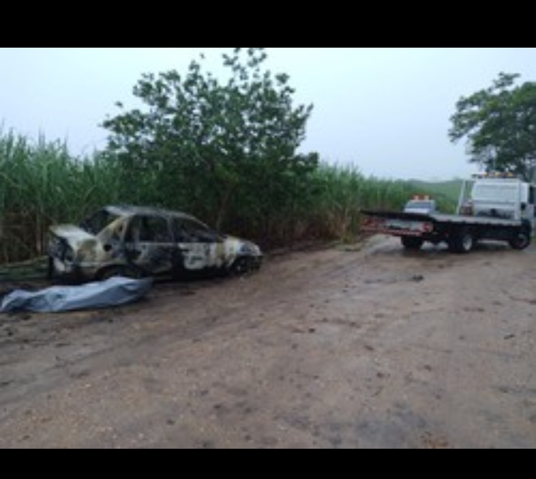 Um corpo totalmente carbonizado foi encontrado dentro do carro em uma área de matagal localizada na Estrada da Tábua, no município de Laranjeiras, neste domingo (6).