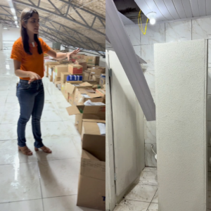 Importantes arquivos foram perdidos, com documentos ficando completamente mofados e irrecuperáveis. Além disso, o forro do banheiro desabou e as instalações do centro administrativo ficaram completamente alagadas, prejudicando o funcionamento da administração municipal. Em entrevista, Kelly Fonseca destacou que a situação é alarmante: “O novo centro de administração foi inaugurado há menos de 15 dias, porém no primeiro evento chuvoso já aconteceu de alagar. Está uma situação muito perigosa para o pessoal, pois temos problemas com o forro do teto que está soltando, vazamentos, além de infiltrações que podem comprometer toda a parte elétrica”, pontuou.