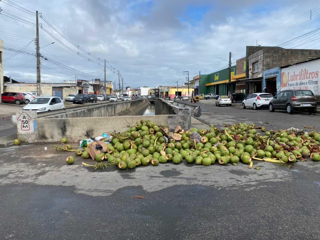 Uma foto chegou na nossa redação, da avenida Airton Teles, Bairro Getúlio Vargas, onde vários cocos foram descartados de forma irregular, ocasionando transtornos para os condutores de veículos e comerciantes.