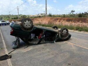 Um carro capotou na manhã desta terça-feira (23) na rodovia SE-464, no município de São Cristóvão, nas proximidades do acesso à BR-101.