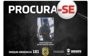 Nesta quarta-feira (8), a Polícia Civil de Sergipe divulgou a imagem de um homem investigado pelo crime de importunação sexual contra uma mulher, fato ocorrido na Rua Santo Amaro, região central de Aracaju.