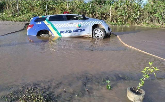 Viatura do BPtur é engolida por buraco na Zona de Expansão de Aracaju
